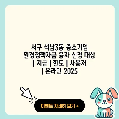 환경을 생각하는 중소기업이 되기 위해서는 적절한 자금 지원이 필수적이에요. 서구 석남3동에서 제공하는 중소기업 환경정책자금 융자는 이러한 필요를 충족시켜주는 좋은 기회랍니다. 이 글에서는 이 자금의 신청 대상, 지급 기준, 한도, 사용처 등 다양한 정보를 상세히 설명할게요.
